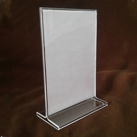 Soporte acrílico en forma de T para menú, soporte de mesa para menú